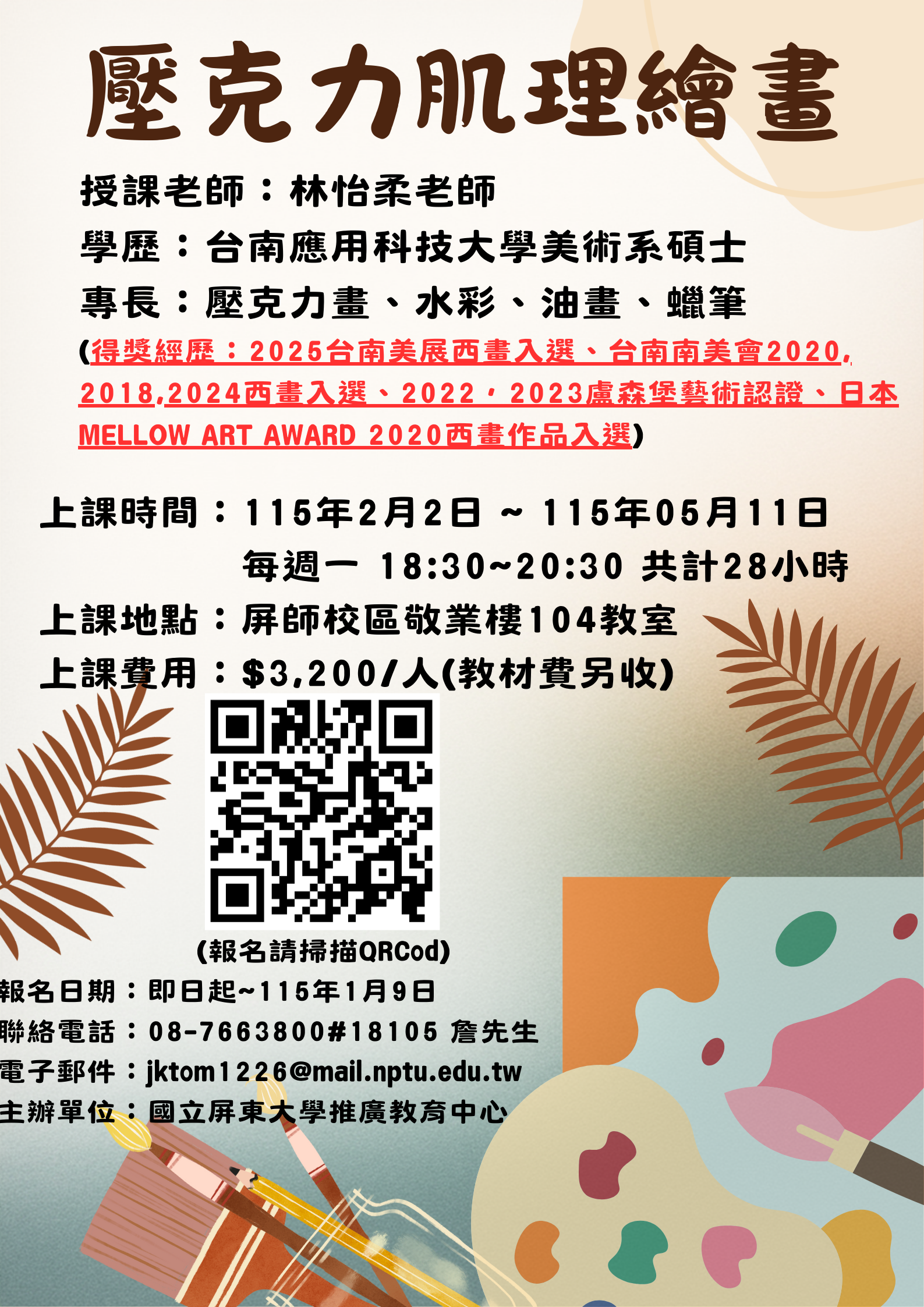 【公告】115上半年壓克力肌理繪畫班_延長報名至115年1月29日
