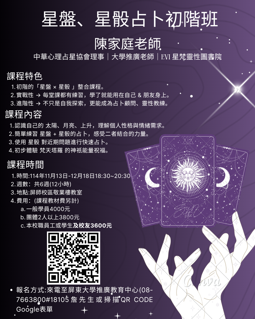 【公告】114年度星盤、星骰占卜初階夜間班(自費班)