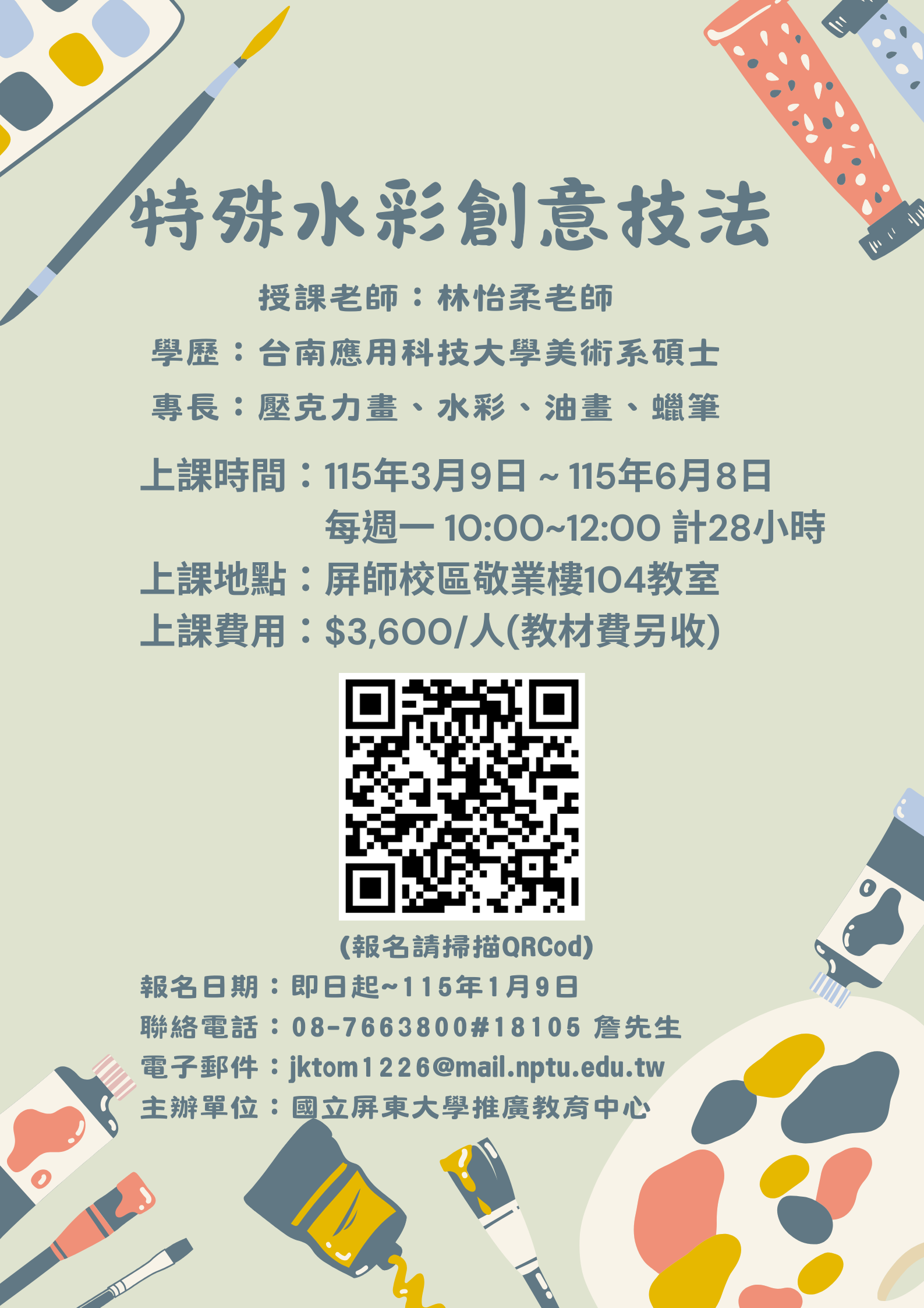 【公告】115上半年度特殊水彩創意技法班(自費班)