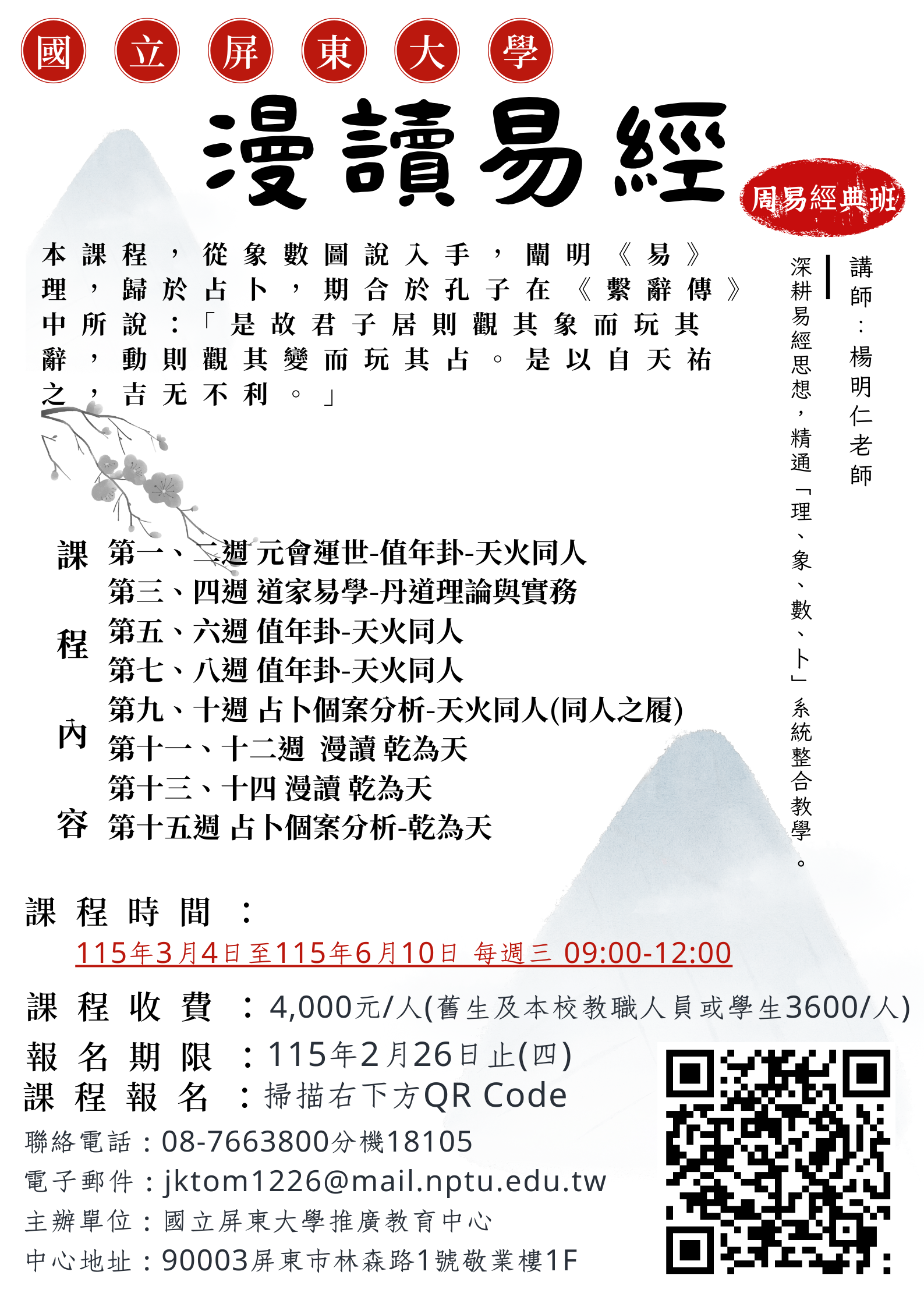 【公告】115上半年漫讀易經-周易經典班(日間)