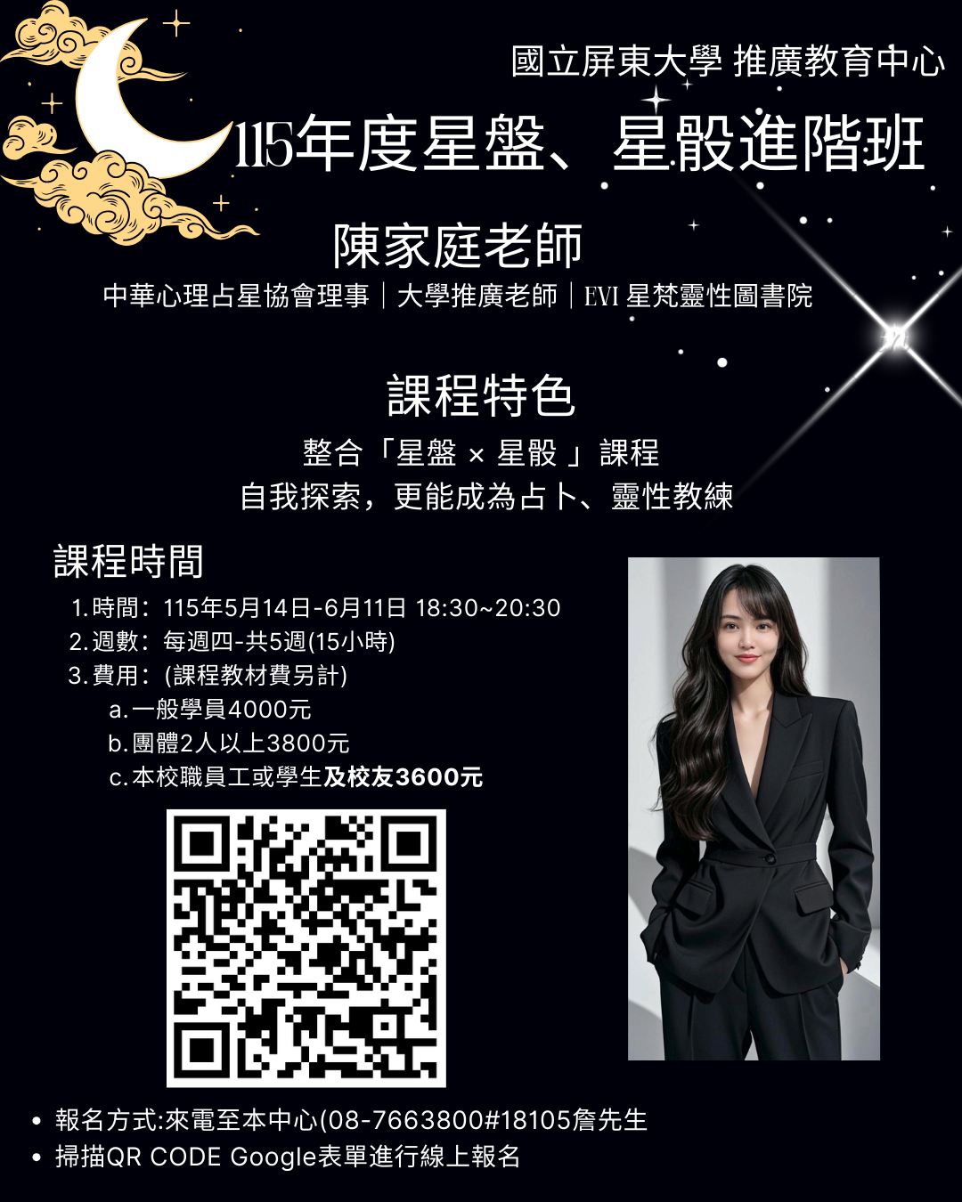 【公告】115年度星盤、星骰占卜進階夜間班(自費班)